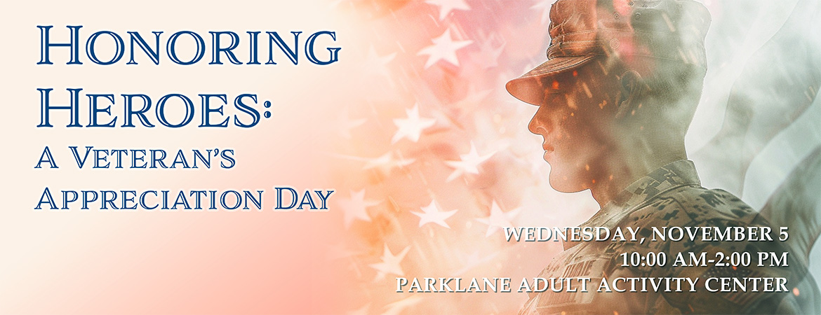 Join us for "Honoring Heroes: A Veteran's Appreciation Day," on Wednesday, November 5 from 10:00 am-2:00 pm at the Parklane Adult Activity Center!